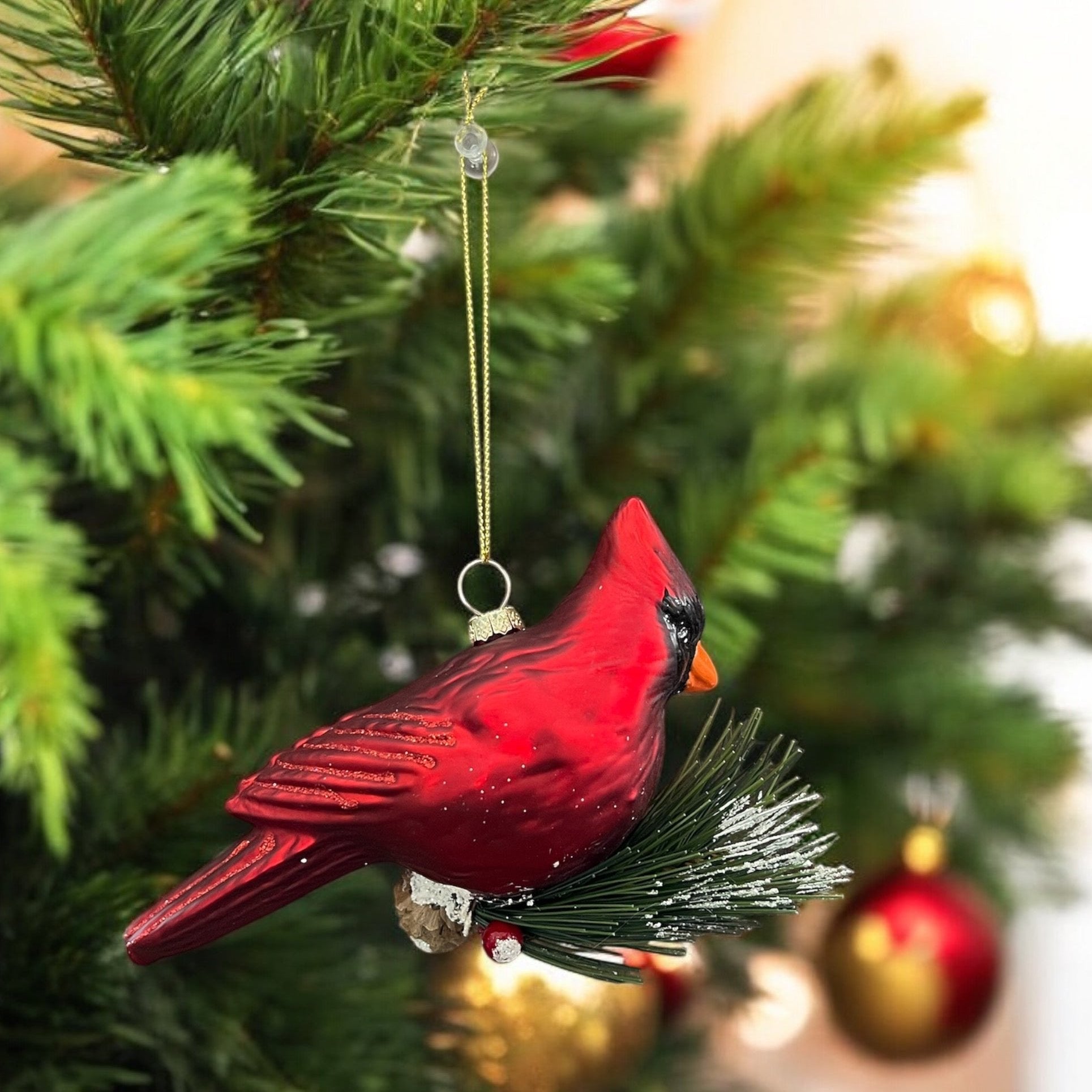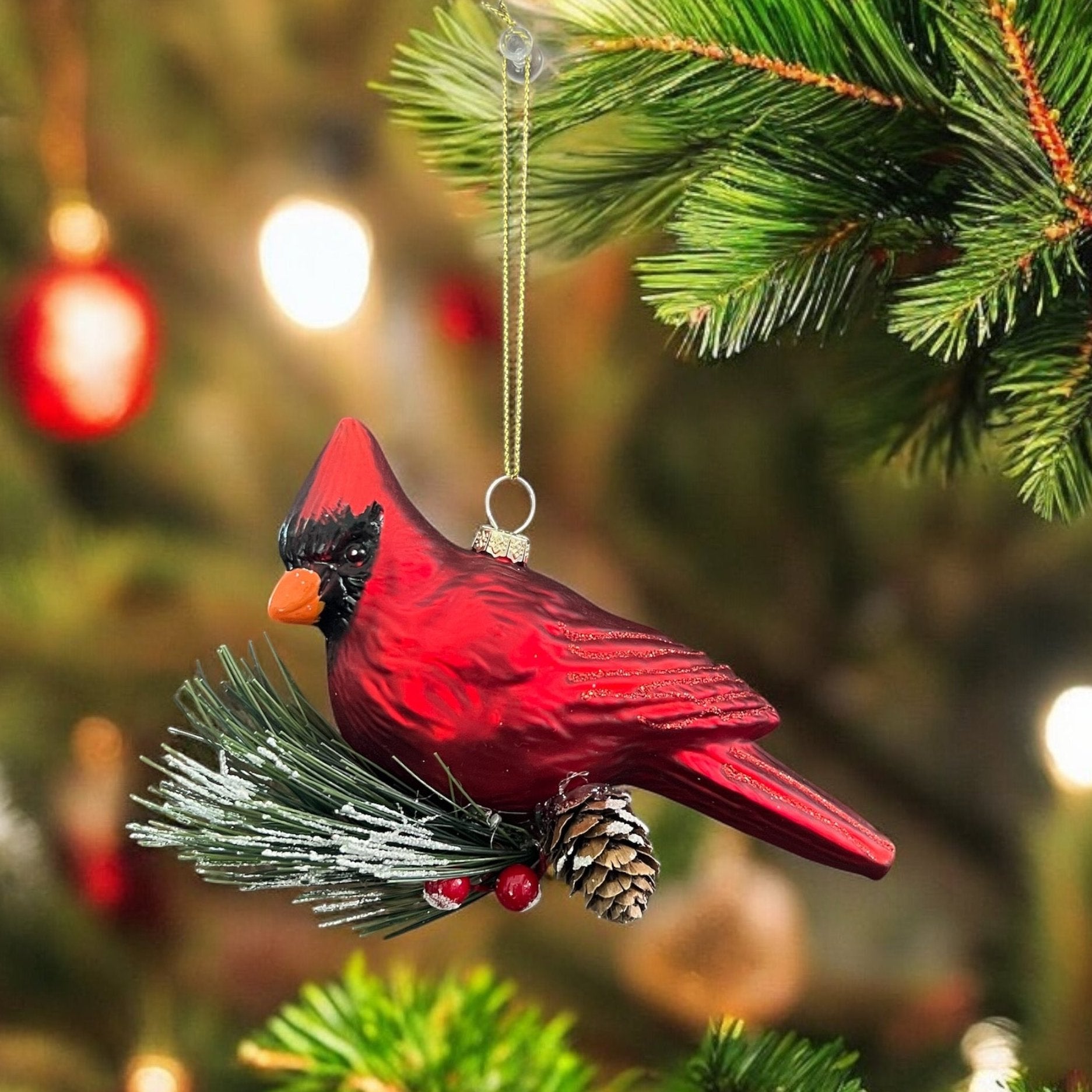 Capture the beauty of winter with our exquisite Cardinal on Branch With Pine Glass Ornament. Crafted with intricate details and high-quality glass, this ornament depicts a charming cardinal perched on a snow-covered branch, surrounded by lush pine. Add a touch of elegance to your holiday decor with this exclusive piece.