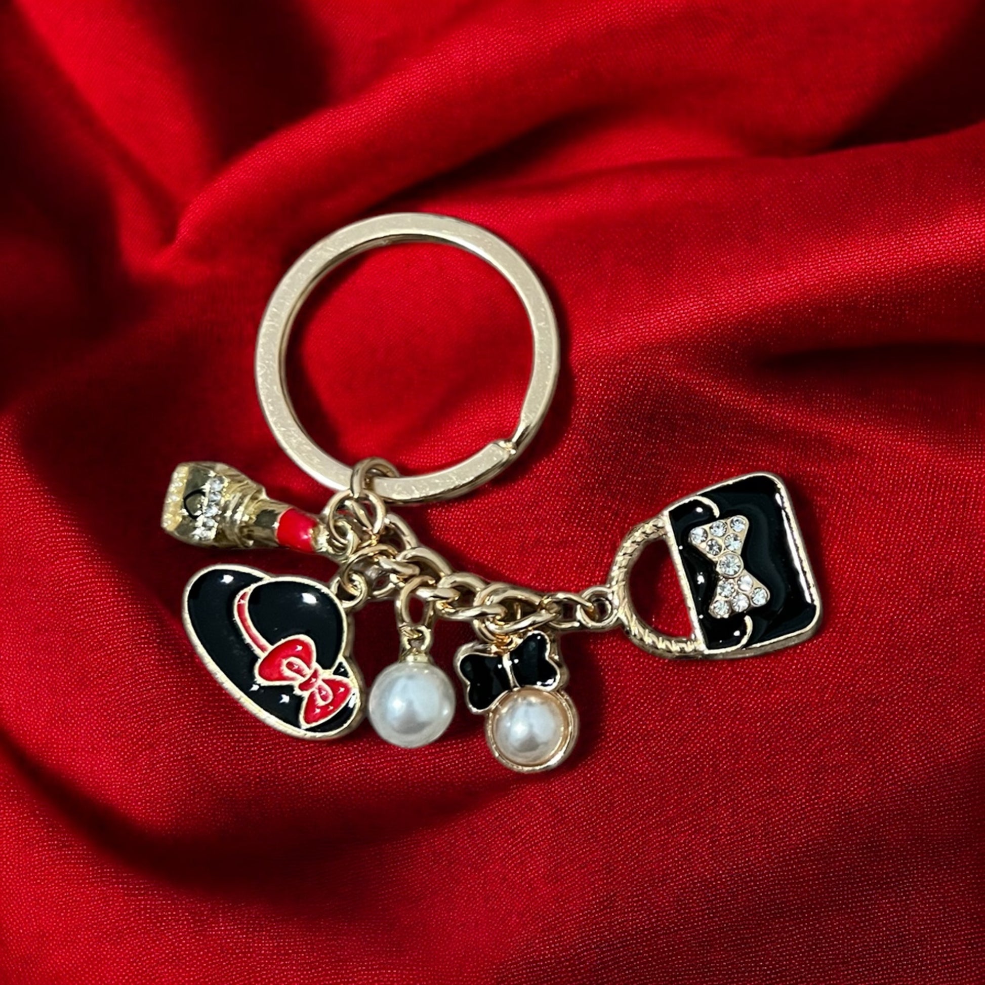 Elevate your style with our Couture Chic Keychain. Adorned with a hat, lipstick, pearls, and a bow and purse charm, this keychain is the epitome of luxury. A must-have accessory for the fashion-forward, it adds a touch of sophistication to any handbag or keys. Embrace the finer things in life with our Couture Chic Keychain.