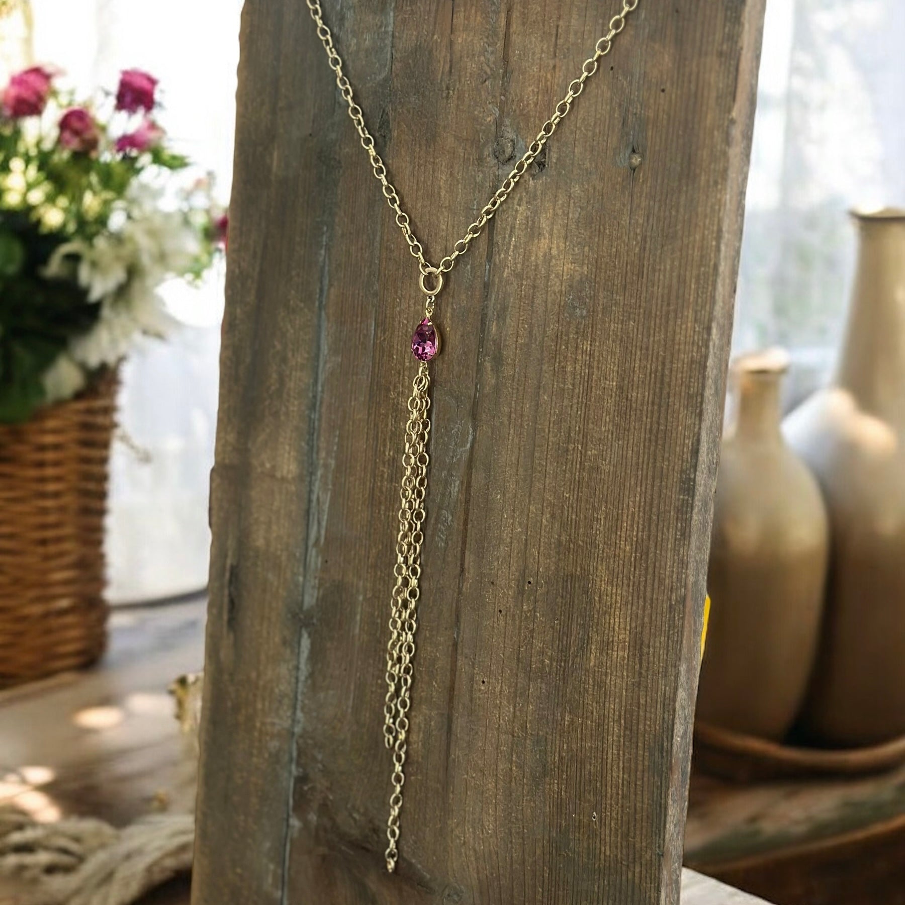Elevate your style with our Fringed Chain Crystal Necklace! This stunning gold necklace boasts a delicate fringe chain that catches the light, adorned with brilliant Austrian crystals. Add a touch of elegance to any outfit and make a statement wherever you go. Perfect for any occasion!
