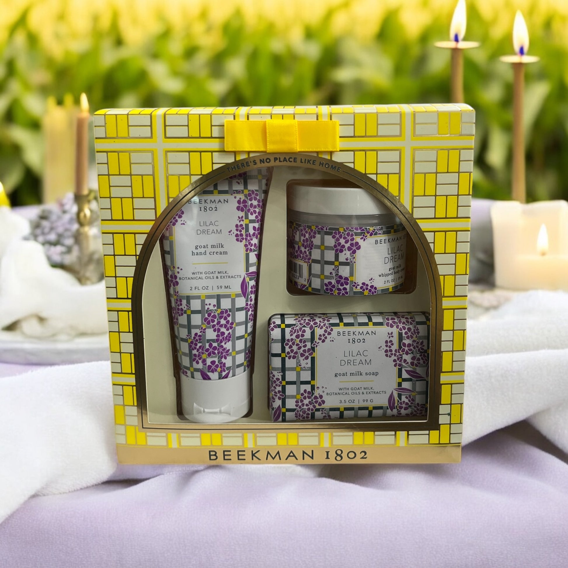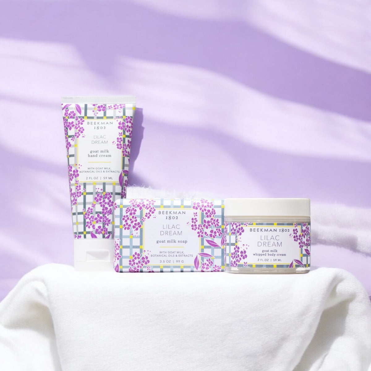 Indulge in the ultimate pampering experience with our Lilac Dream Gift Set. This luxurious set includes a 2oz lotion, a 2oz body cream, and a 3.5oz soap bar - all infused with the delicate scent of lilac. Treat yourself or a loved one to the dreamy benefits of soft, nourished skin.