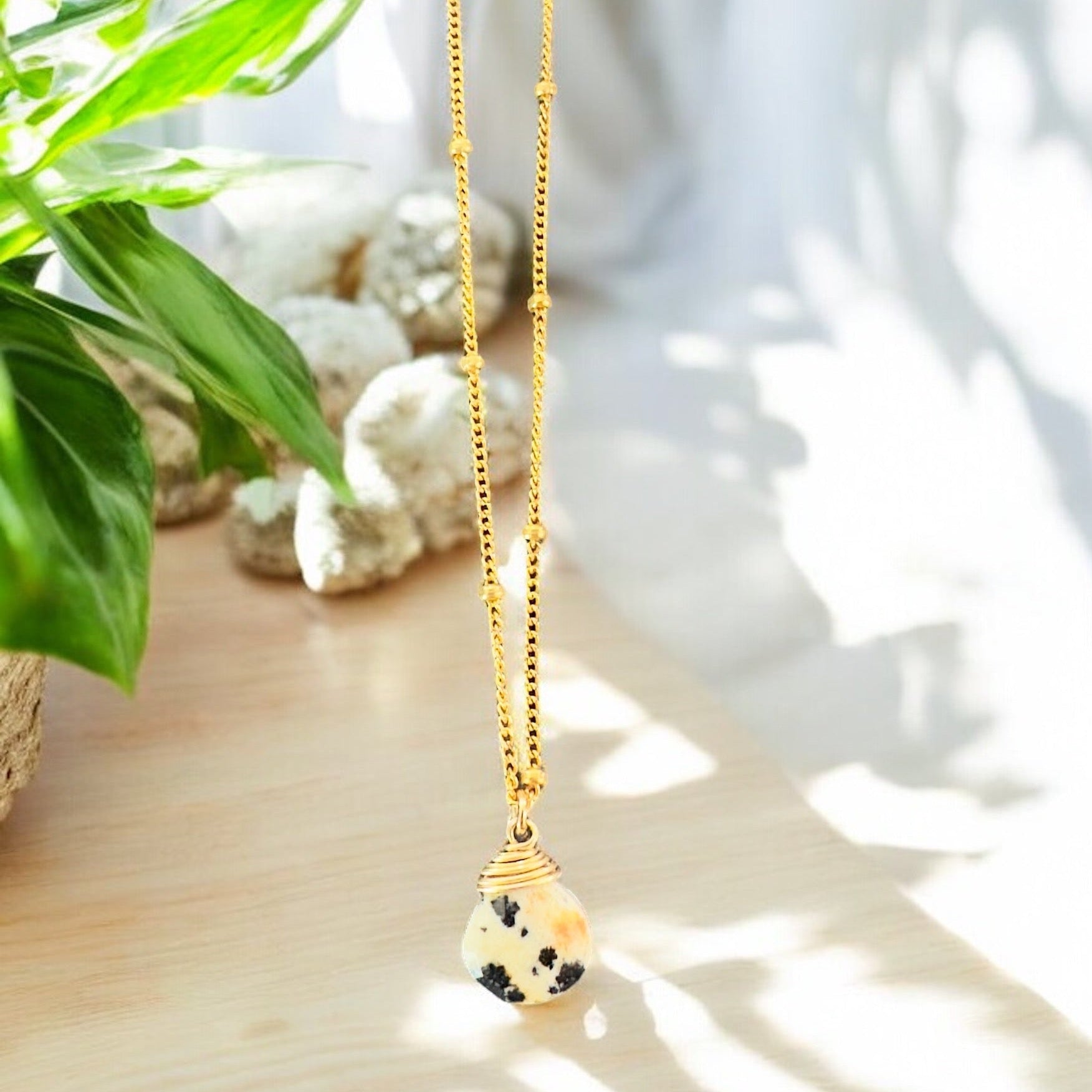 Enhance your look with our dainty Lotus stone necklaces! Each necklace features a beautiful tear drop stone in a variety of colors, adding a touch of elegance to any outfit. Choose from our collection and embrace the power of the Lotus, representing growth and transformation.