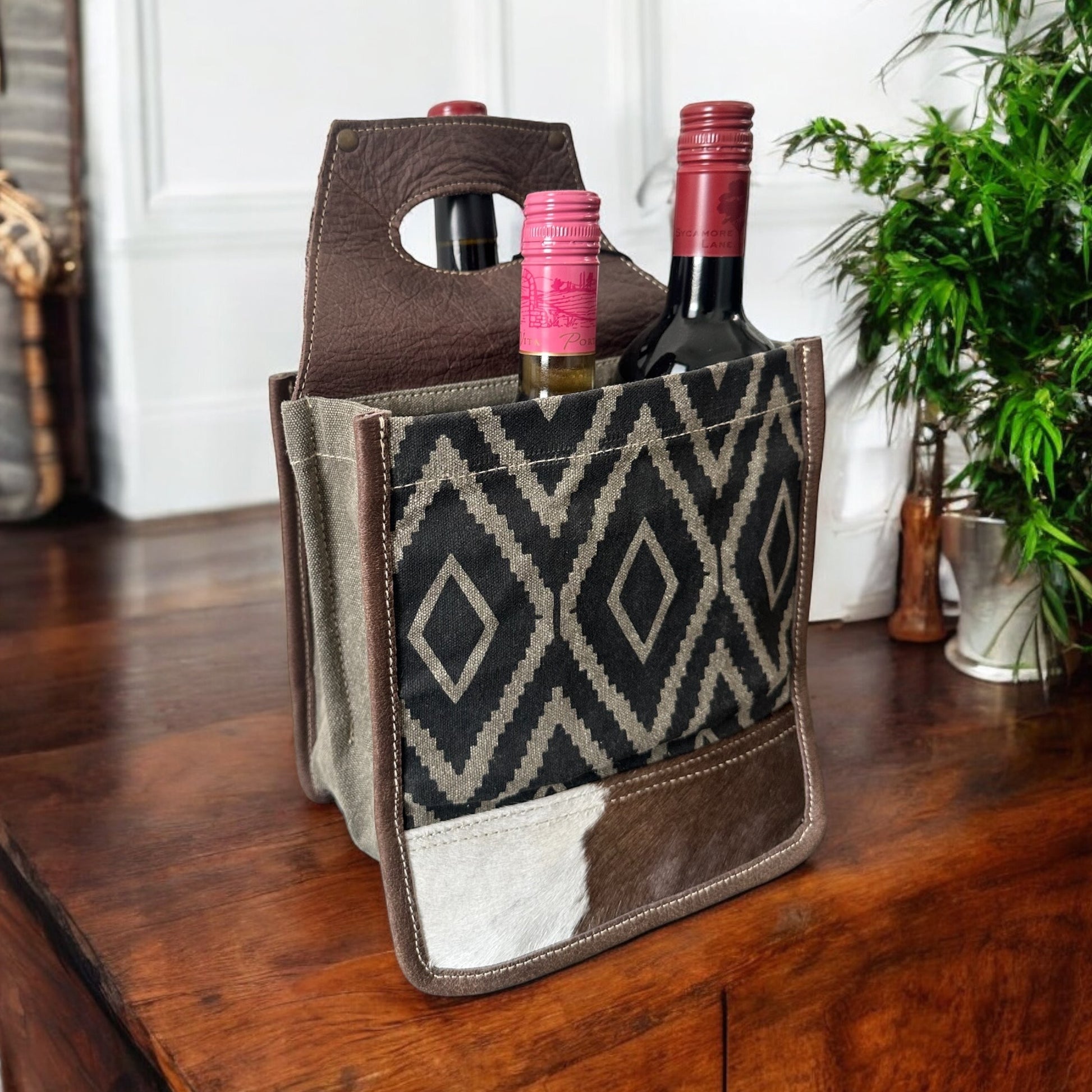 Bring your party to the next level with this wild Myra Chevron 6-pack beer caddy! Made with durable cowprint, it'll carry on the fun in style, so you can keep the beverages flowing with ease. Yee-haw!