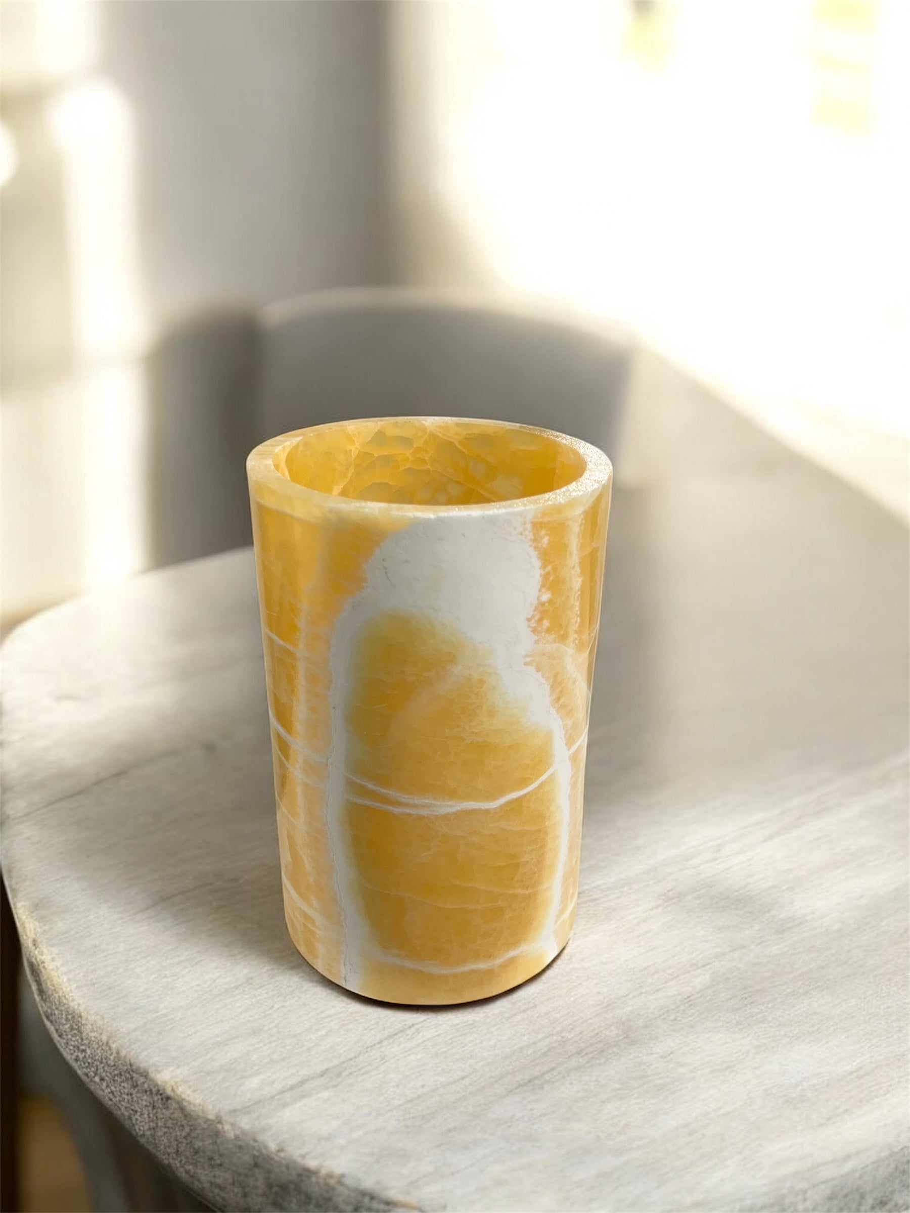 Elevate your decor with our Onyx Cylinder Marble Vase. Crafted from luxurious onyx and sleek marble, this versatile piece can be used as a candle cover or as a base for candelabras. Add a touch of sophistication to any room with this elegant and exclusive vase.