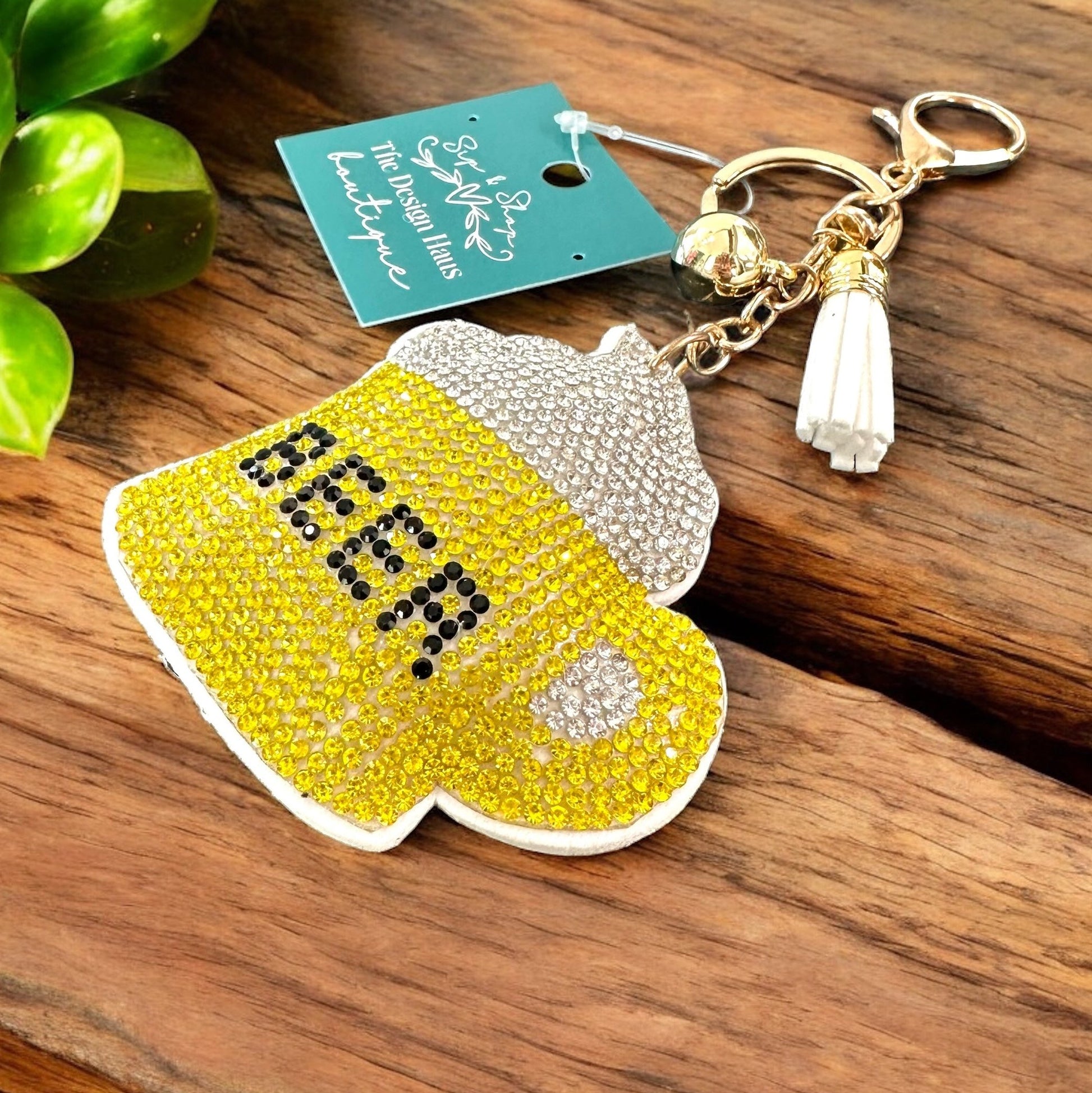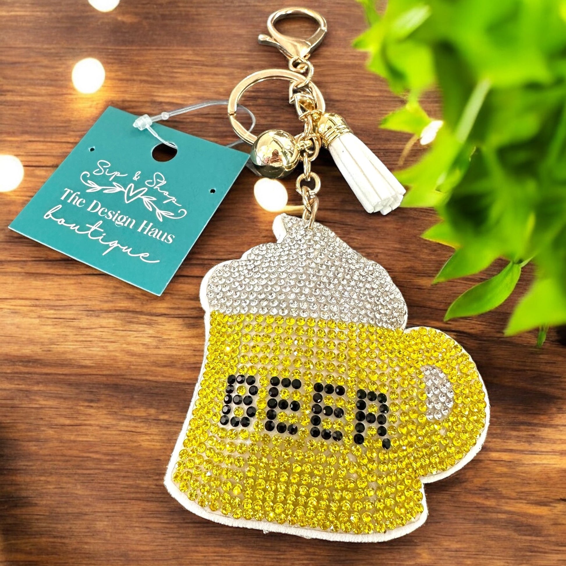 Add some sparkle to your keychain with our Rhinestone Beer keychain! This playful accessory features a puffed "Beer" shape with dazzling rhinestones and a fun tassel. Perfect for beer lovers and anyone who likes a little bling in their life. Cheers, and keep your keys safe in style!