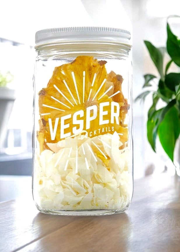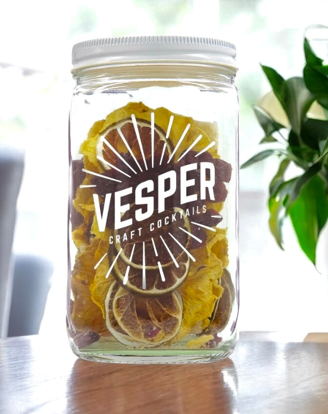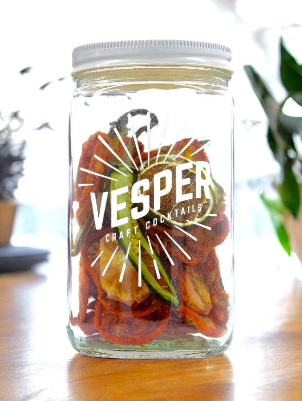Spice up your cocktail game with the Vesper infusion jar! Enjoy refreshing flavors and create unique drinks. No more boring cocktails (infused with excitement!) 32oz glass jar serves a party of 16!